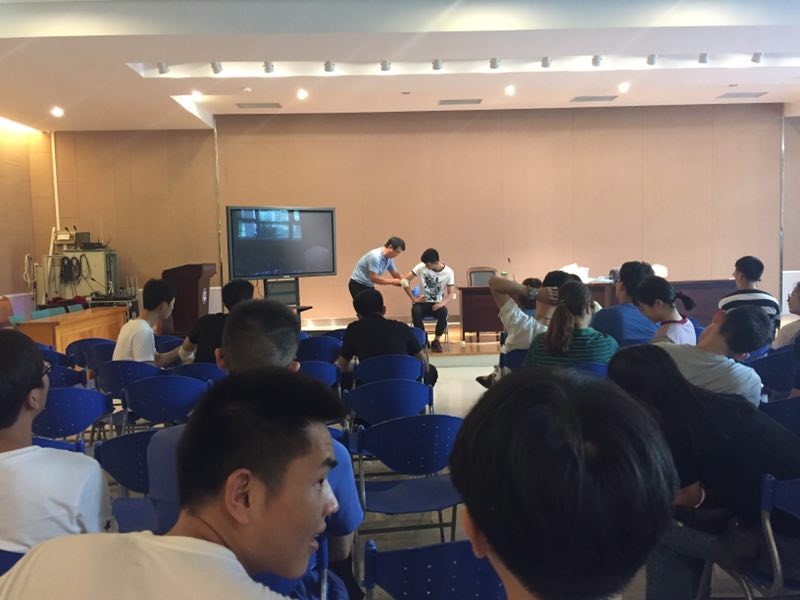 杨存国2号厅对参与今年世界海岛旅游大会和世界油商大会的志愿者们进行紧急救护理论知识培训。下午14:00,俞晓明老师对志愿者们进行了紧急救护实际操作培训。40名大会志愿者全部参加此次培训。培训的目的是使志愿者掌握必要的紧急救护知识和实际操作要领,为服务大会做好充足的准备。