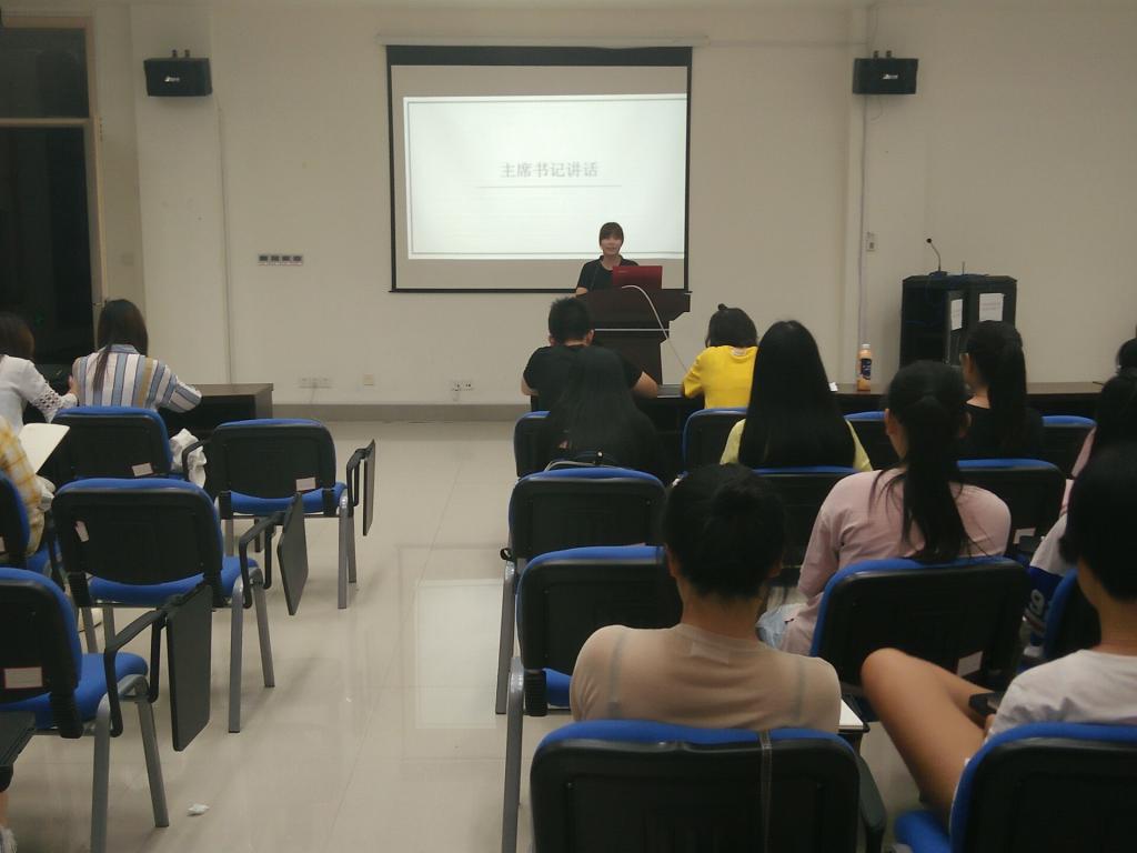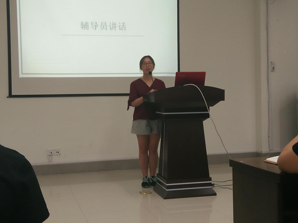 会议开始,团学主席书记发表讲话。主席严萍萍谈到了团学干部自身工作的完成须认真细致外,还应加强部门之间的合作,从而产生团学的一体感。接着各部门部长和副部长们上台进行自我介绍及对自己所负责部门事务的简短介绍,意在使各部门人员和职责互相了解与熟悉。而后主席再次确认了14、15号的迎新安排,提出了一些注意事项。在最后的辅导员讲话中,余妮泽老师强调了团学改革后各部门应增强高效合作意识,将学院工作做得更加出色;李鑫老师则将团学工作的进行看作一种学习状态,鼓励大家在工作中不断学习与成长。
