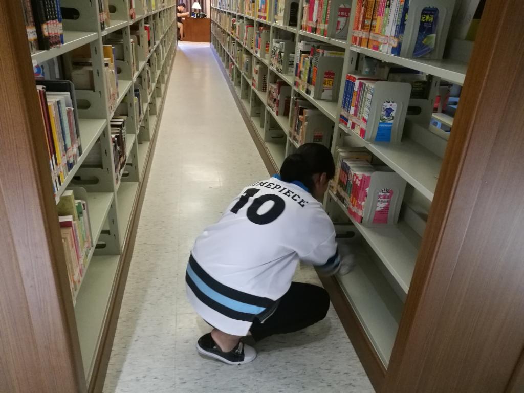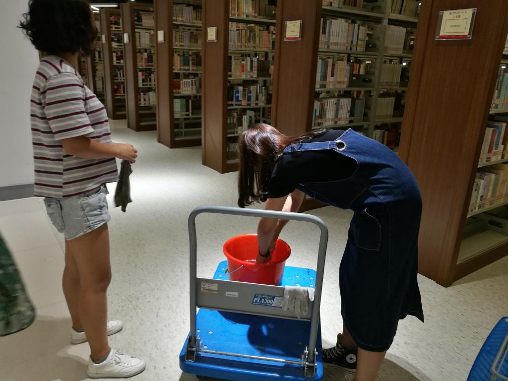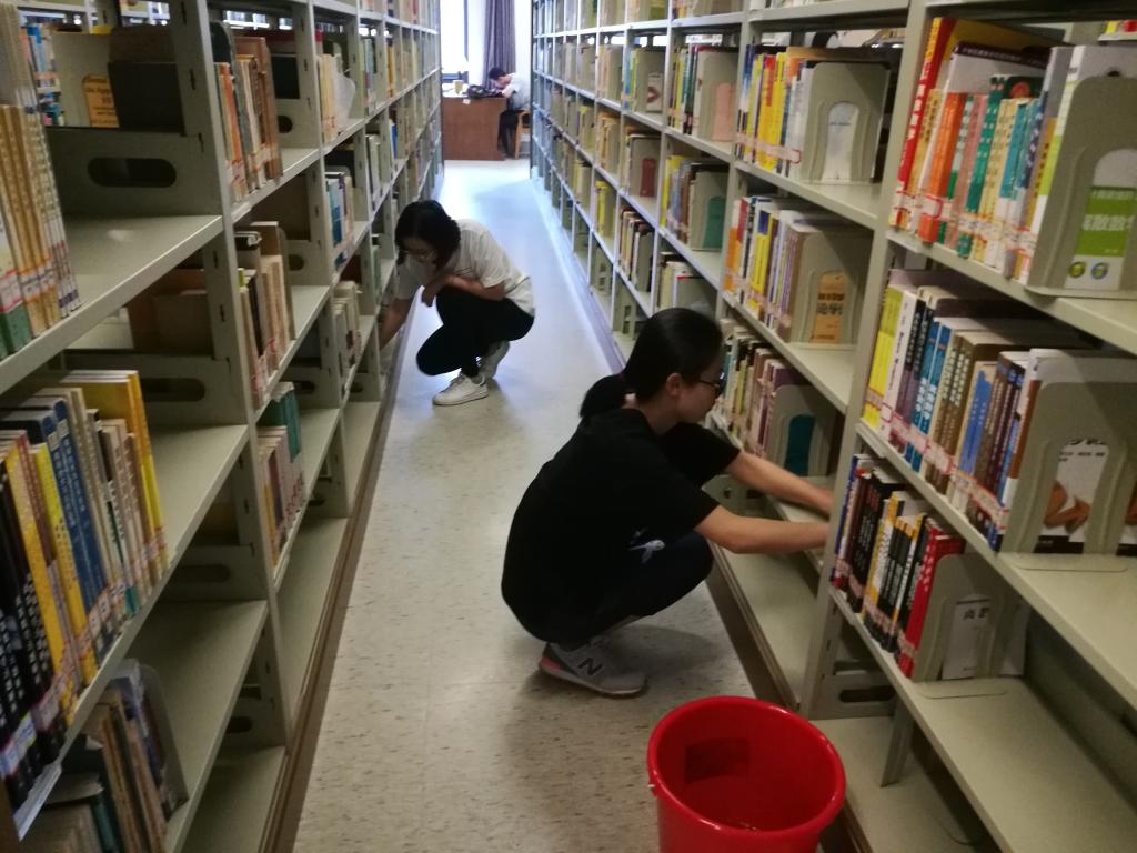 志愿者们准时来到集合地点,由图书馆工作人员分小队带往流通书库,进行书架的清洁工作。他们极有默契的配合与效率的分工使清扫工作进展十分顺利,极大地减少了对需要借阅图书的同学的影响。