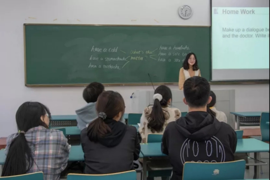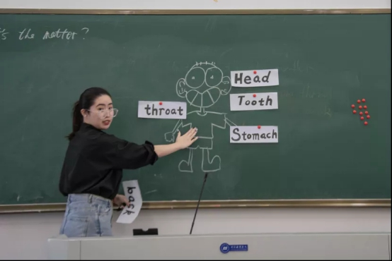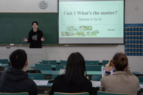 接着是模拟上课环节,时间为十分钟。参赛选手们有各自独特的授课风格,课程精彩纷呈,有声有色。选手们利用精美的PPT、有趣易懂的图片、小视频、有条理的板书呈现自己的教学内容,还会适当问在场的同学们一些问题,与同学们进行互动,营造了很好的课堂效果。比赛期间在场的评委和同学们频频点头,掌声不断。