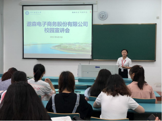 2021年6月3日下午,宁波豪雅进出口集团有限公司、遨森电子商务股份有限公司校园宣讲会在公共教学楼428教室举行。本次宣讲会邀请宁波豪雅集团招聘主管胡时果和遨森电子商务股份有限公司招聘经理邓海英为主讲人,18级学生到场并聆听了此次宣讲。