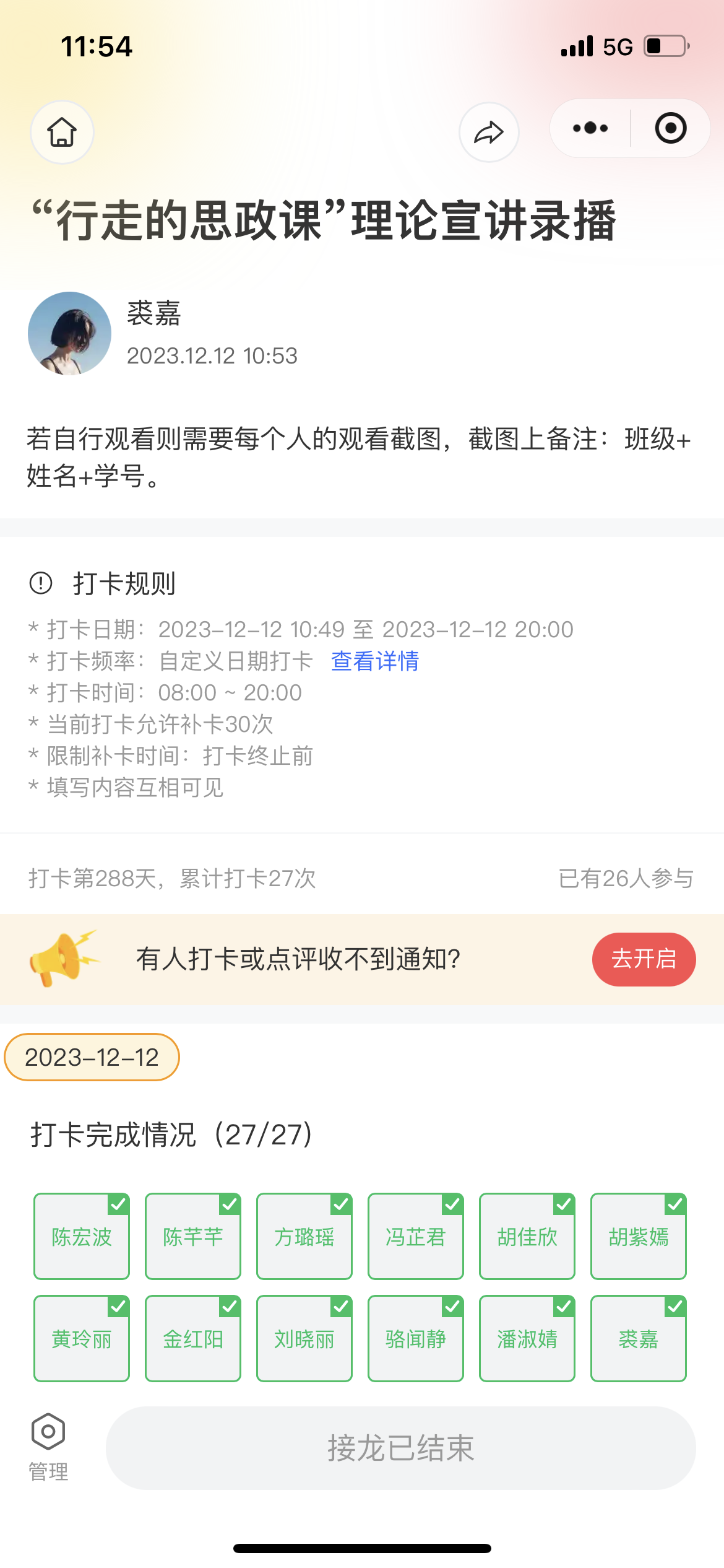 Y22教育(学科英语)班级于2023年12月12日开展了在线收看“行走的思政课”理论宣讲录播的活动。