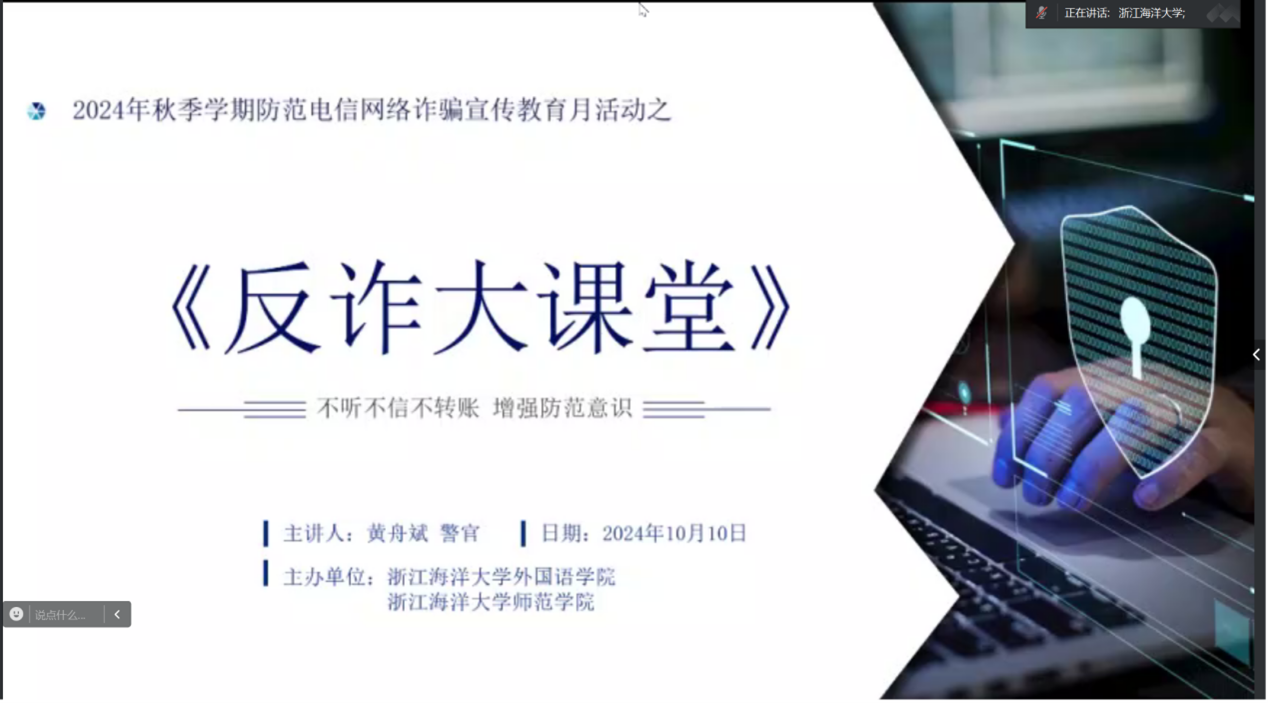 在长峙校区会议室101召开防诈骗安全教育会议。本次会议特邀请舟山防诈民警黄舟斌进行防诈骗安全教育,做爱视频