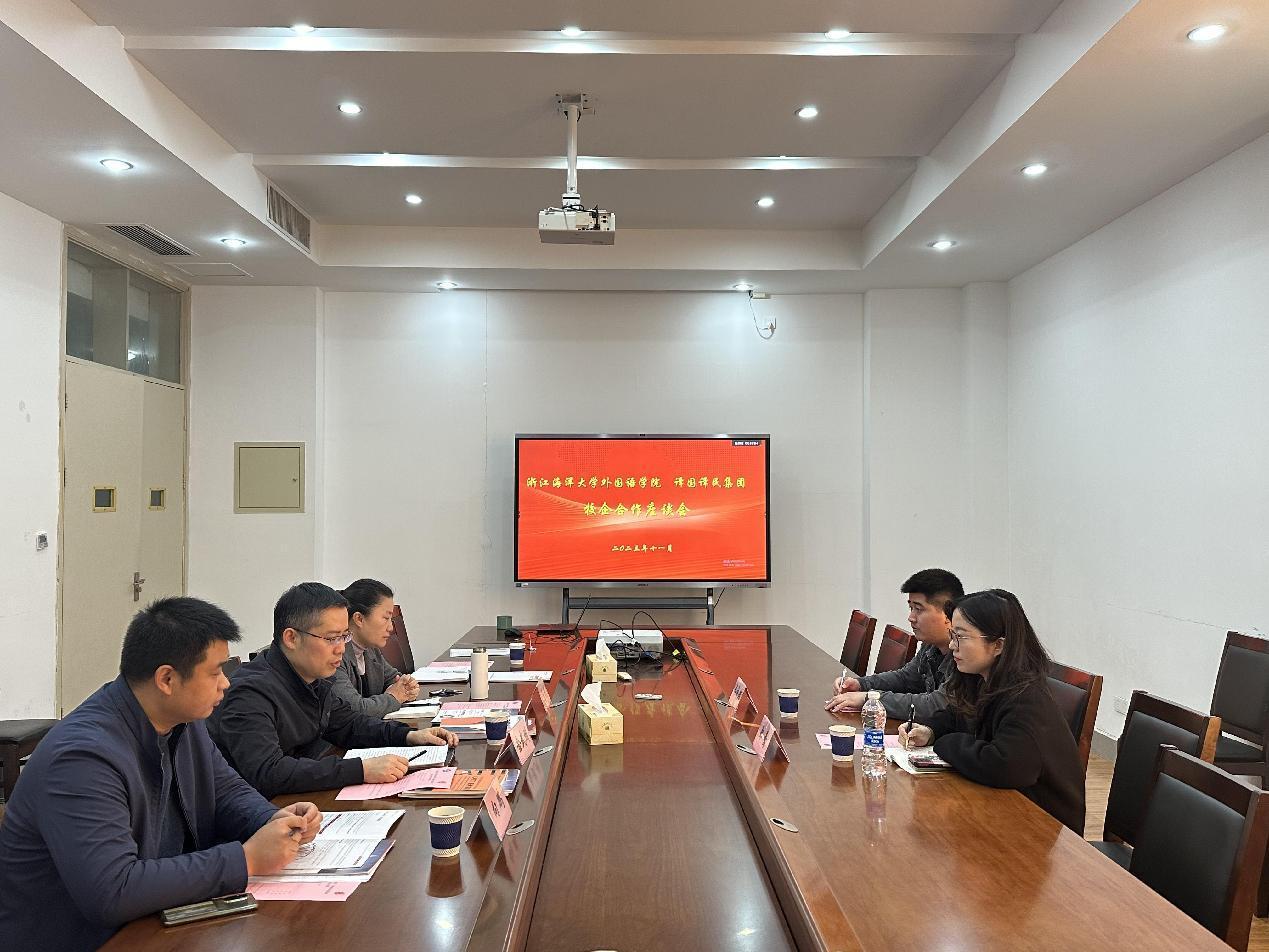 首先,金武州书记对公司代表表示热烈欢迎,他介绍了学院专业设置、师资力量等情况。福州译国译民集团高校事业部郑莺总经理介绍了公司的相关情况,公司总部位于福州,主营业务包括翻译服务、培训业务、校企合作、出版业务等。