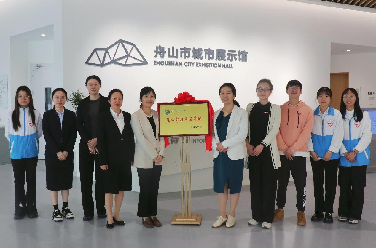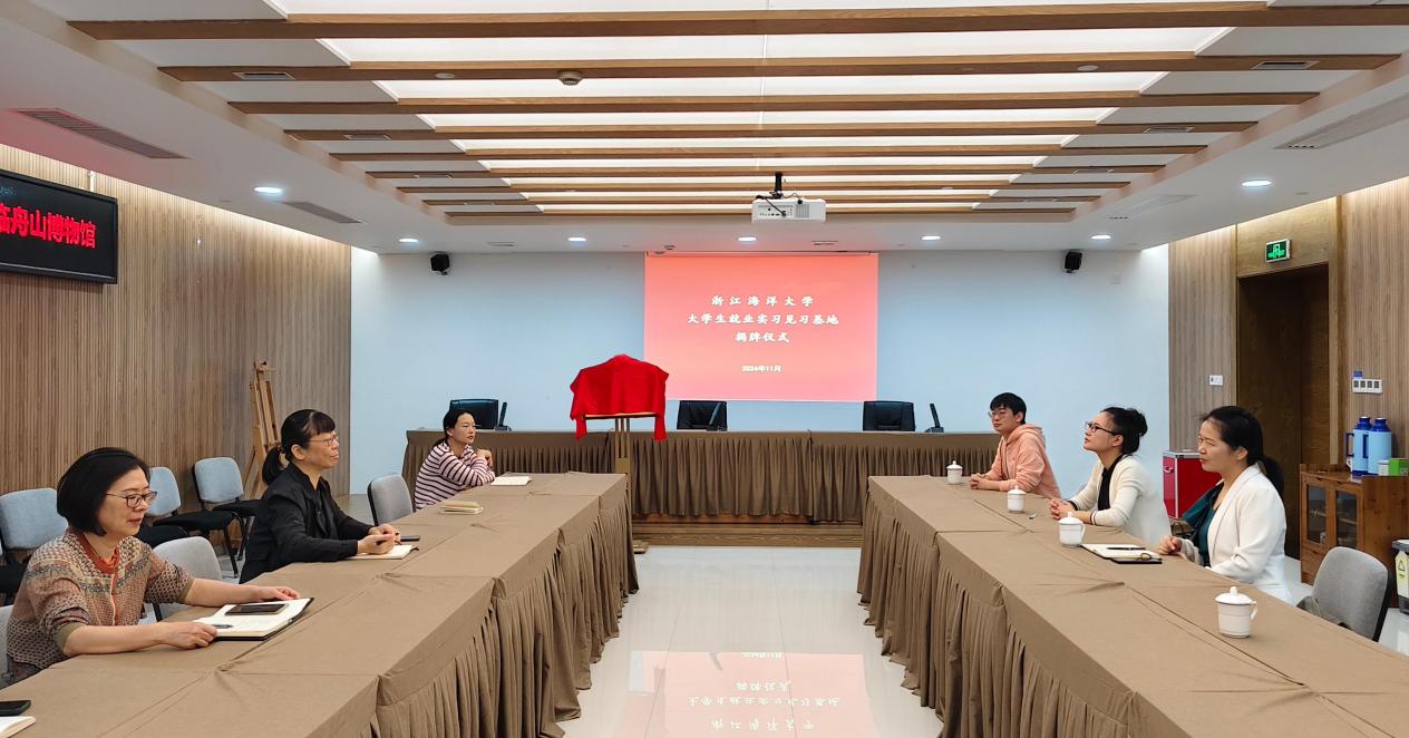 与两馆举行的就业实习见习基地揭牌仪式。舟山市博物馆馆长周若溪、舟山市城市展示馆馆长王静静等出席仪式。